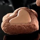Mélanger tous les ingrédients, chauffer à 25° C, verser dans le moule en silicone, laisser sécher, démouler. Verser le chocolat au lait dans le centre du biscuit. |
